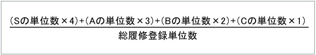 成績の概況を判断する指標として、各科目の Grade Point(GP)を平均した値である GPA(Grade Point Average) を用います。