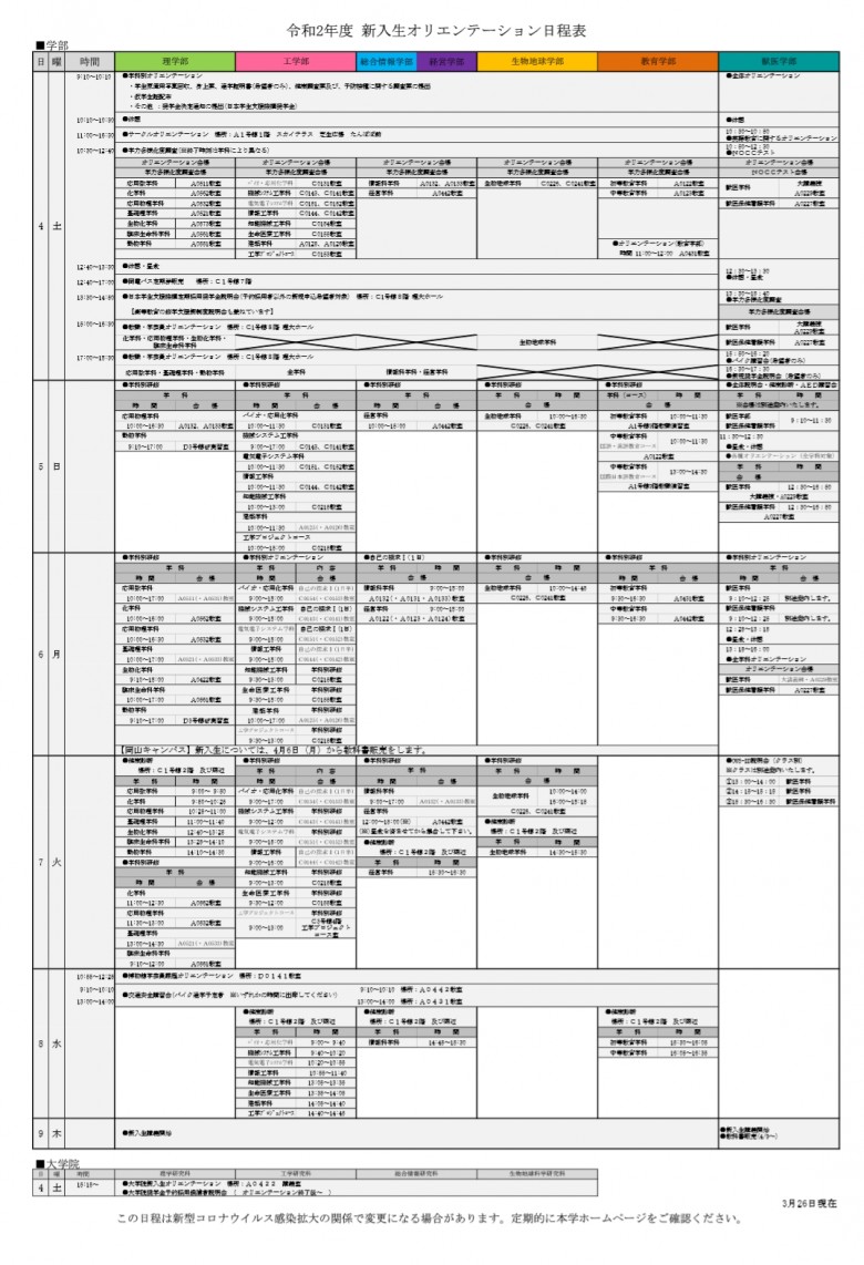 4月4日~8日に実施される予定の新入生オリエンテーションの日程が発表されました。