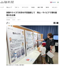 本学科4年生が企画した理科体験イベントが山陽新聞に紹介されました。