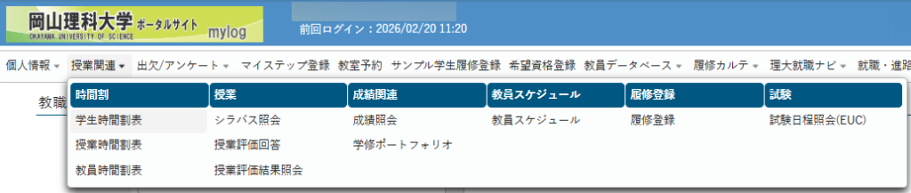 教員の研究室を訪問する際は、その時間帯に教員が授業を担当しているかどうかを、mylogで確認することができます。